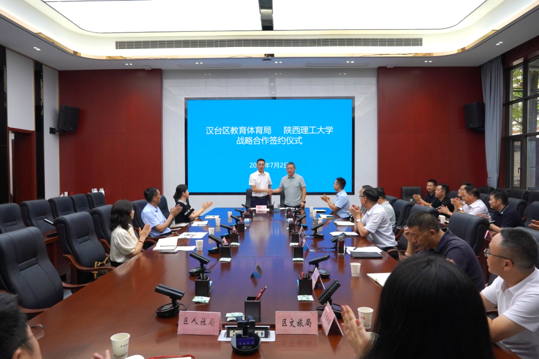 7月2日,漢臺區教體局與陜西理工大學舉行校地合作簽約儀式,漢臺區教體局局長向欣與陜西理工大學副校長、陜西理工科技發展有限公司董事長艾桃桃代表雙方簽約“雙向賦能、互惠共贏”的《戰略合作協議》。區委常委、副區長聶小東出席并致辭。
