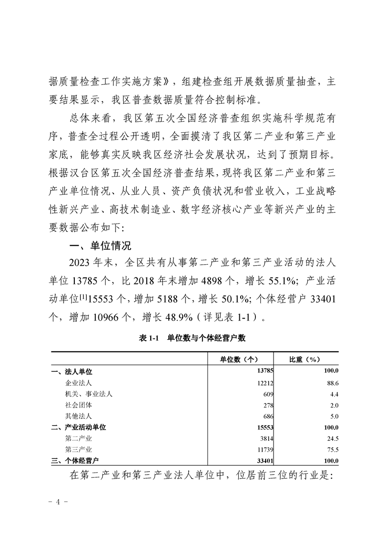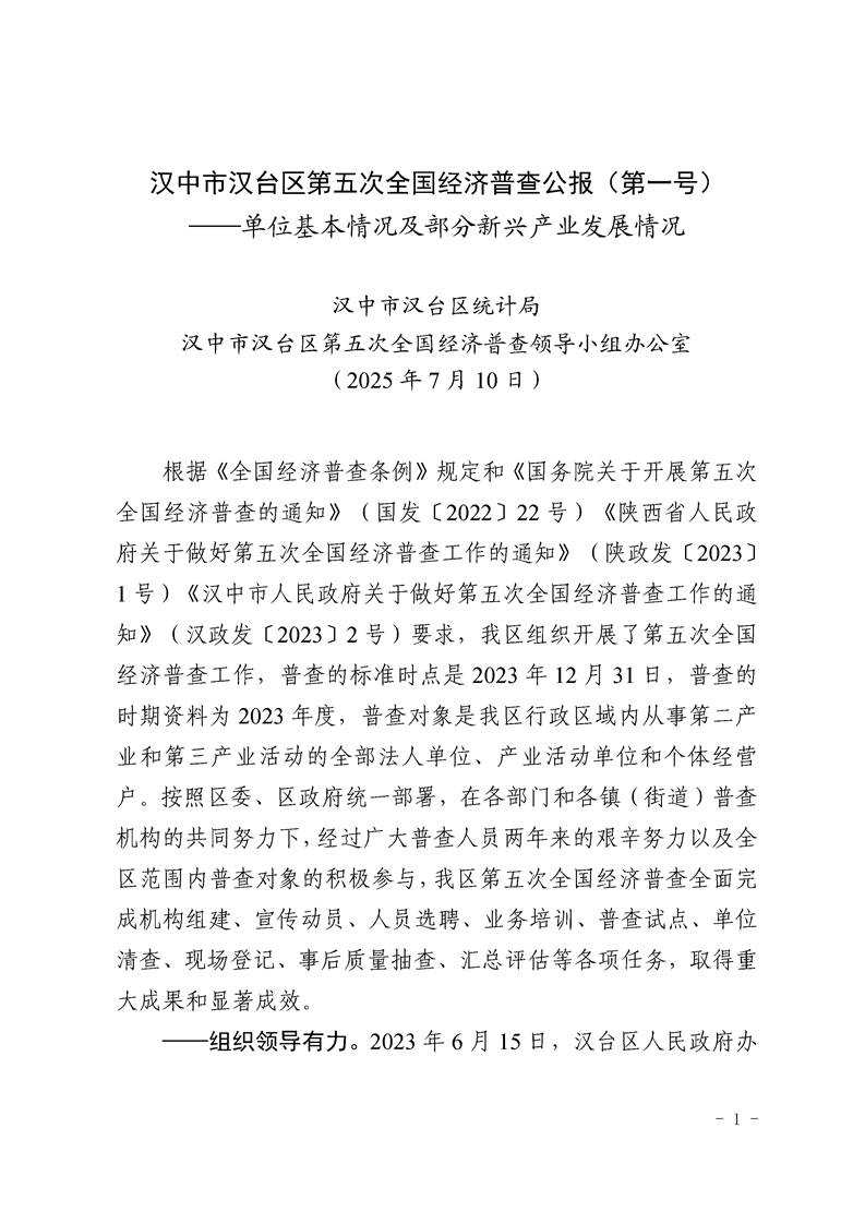 漢中市漢臺區第五次全國經濟普查公報(第一號)——單位基本情況及部分新興產業發展情況