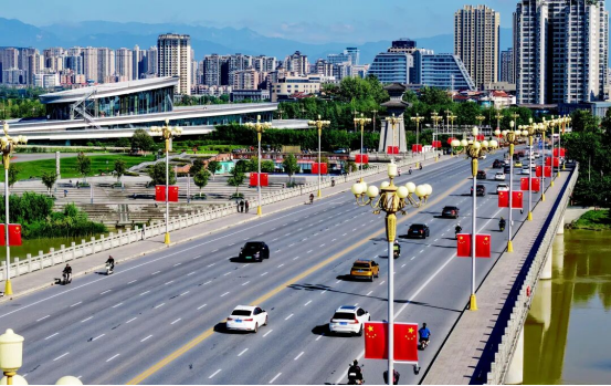 漢臺城區已被莊嚴熱烈的“中國紅”悄然點亮,