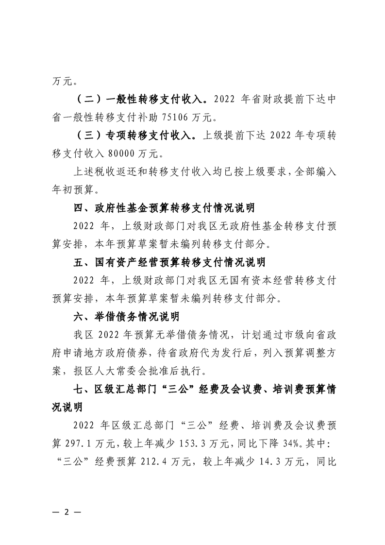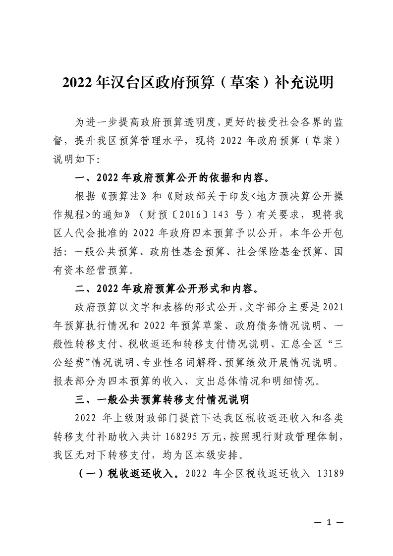 2022 年漢臺(tái)區(qū)政府預(yù)算(草案)補(bǔ)充說(shuō)明