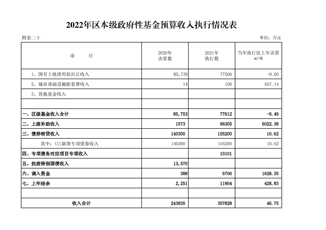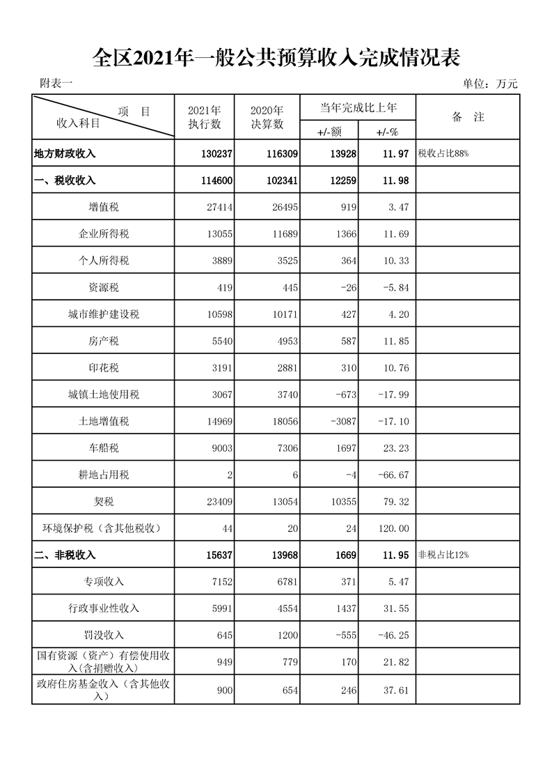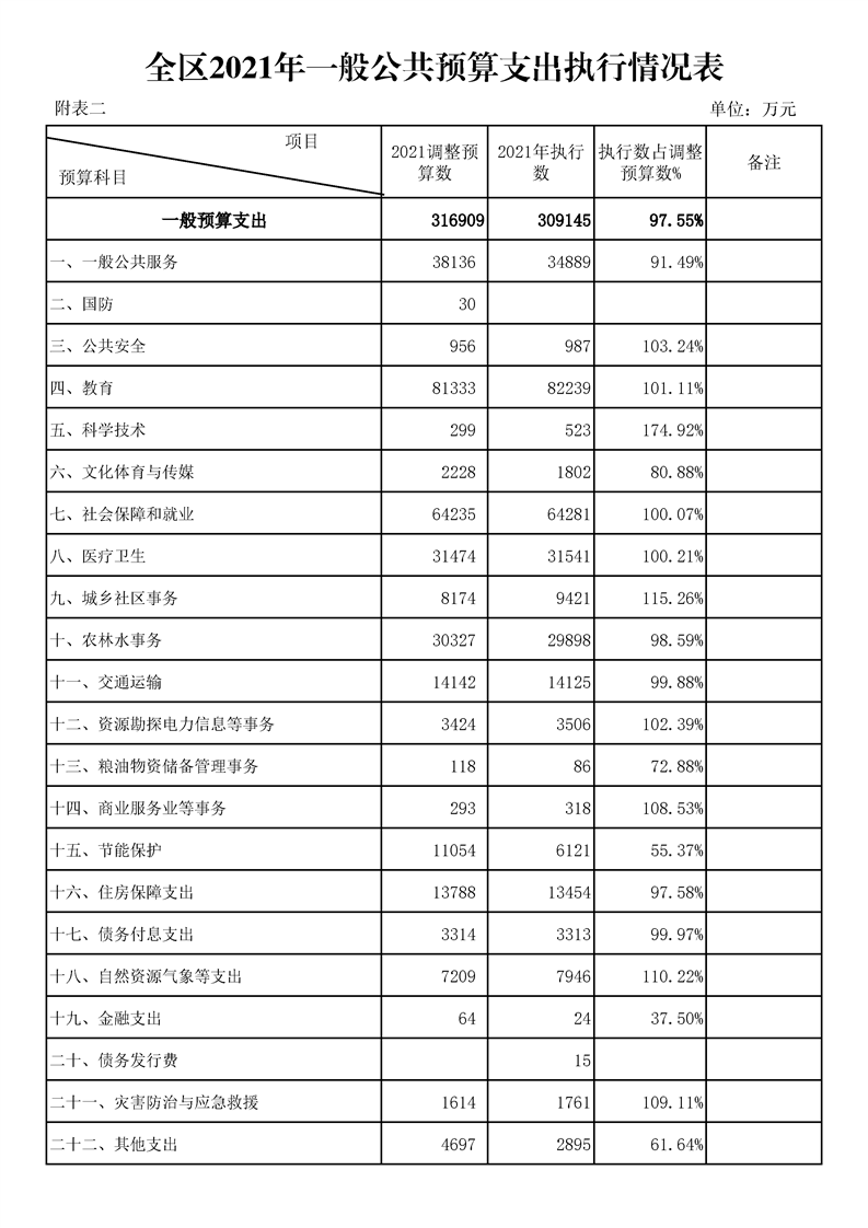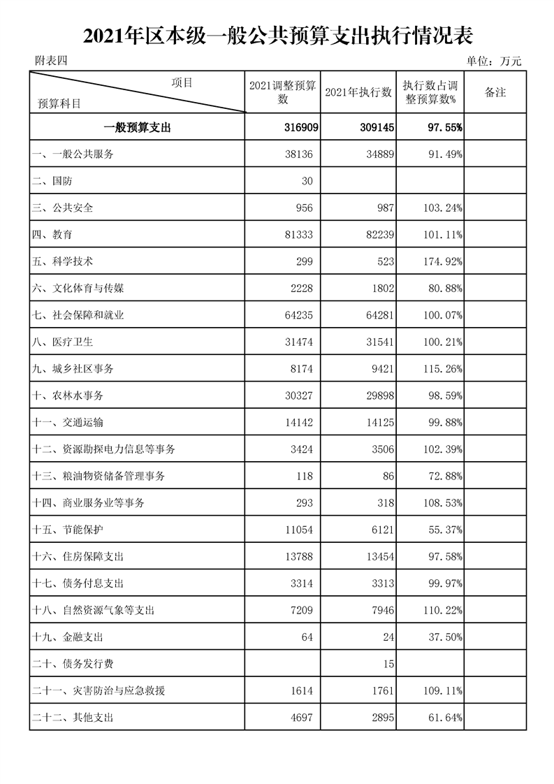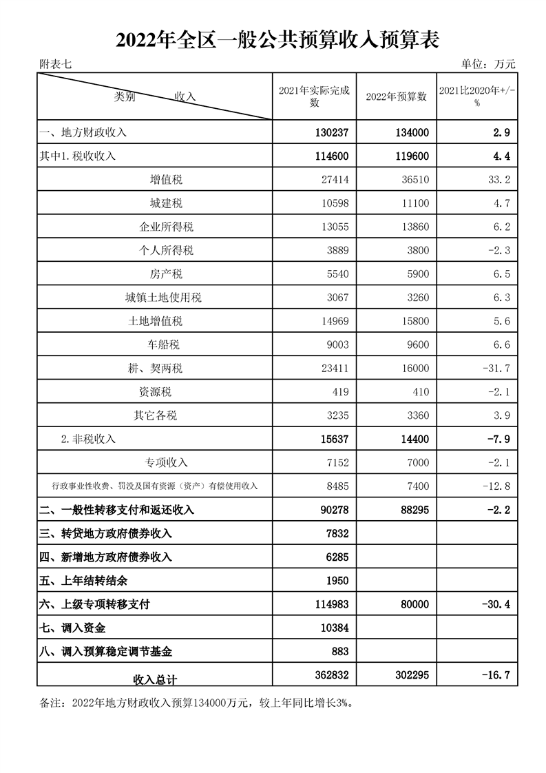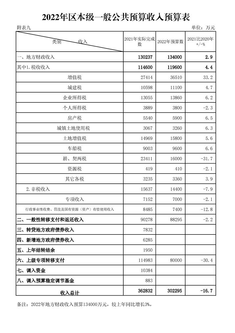 漢中市漢臺區2021年財政預算執行情況和2022年財政預算(草案)