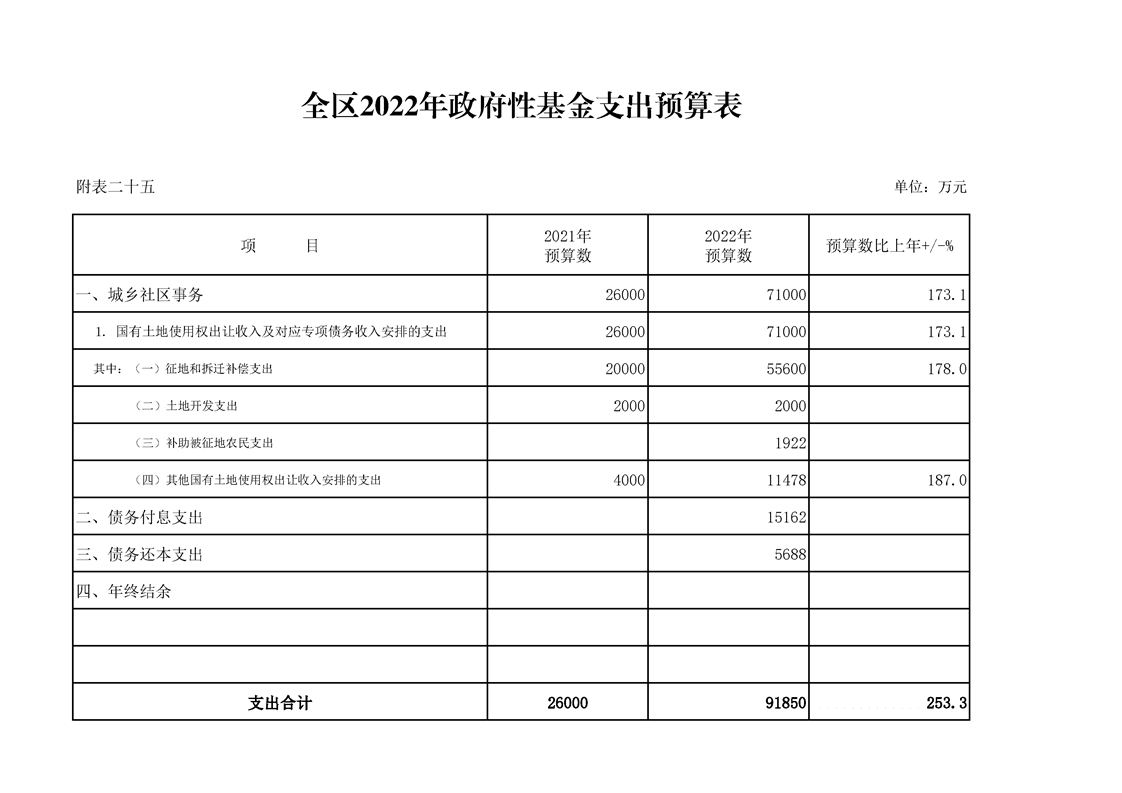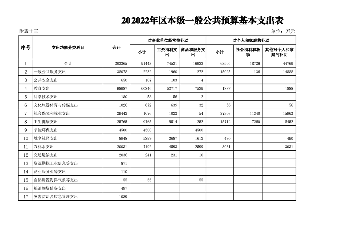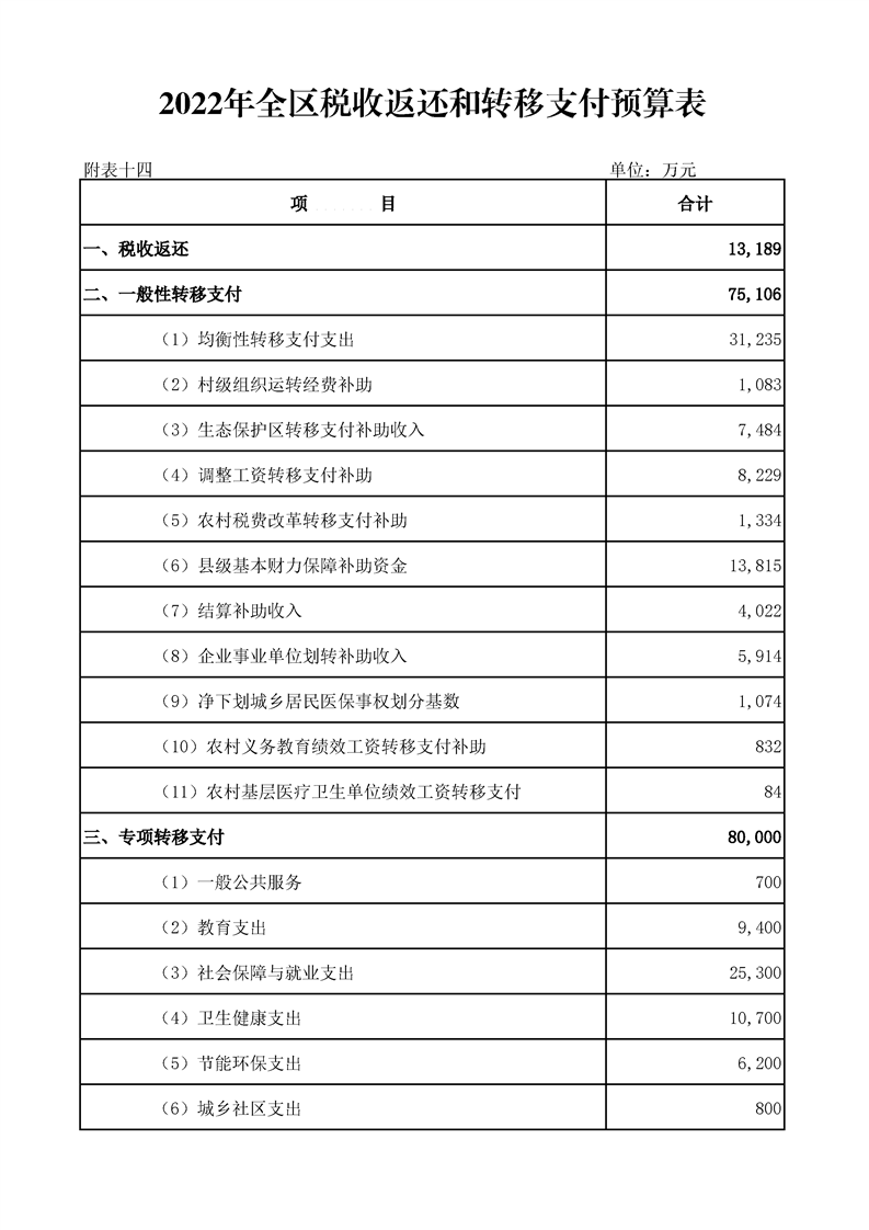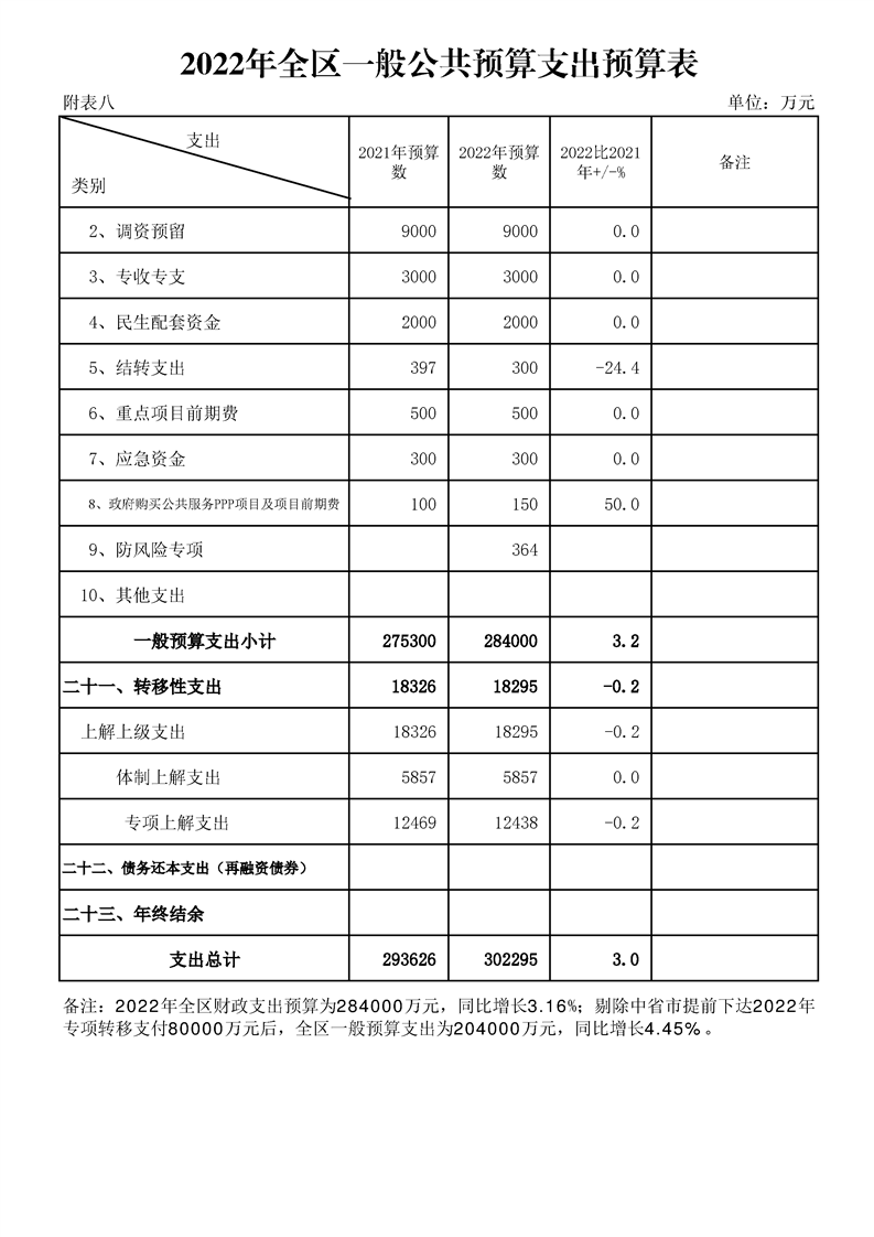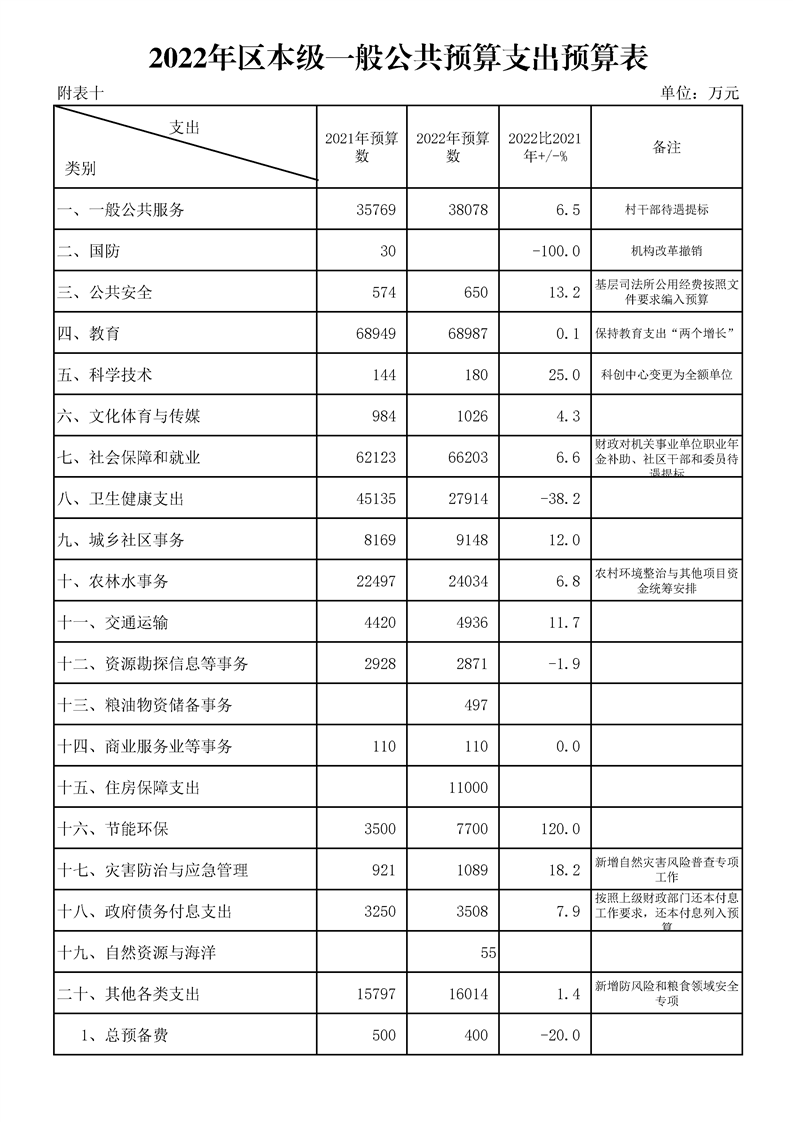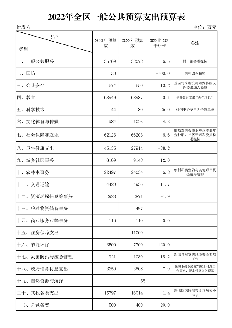 漢中市漢臺區2021年財政預算執行情況和2022年財政預算(草案)