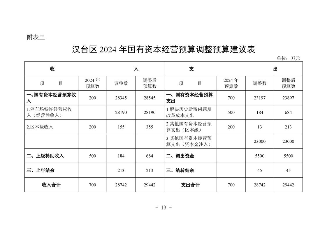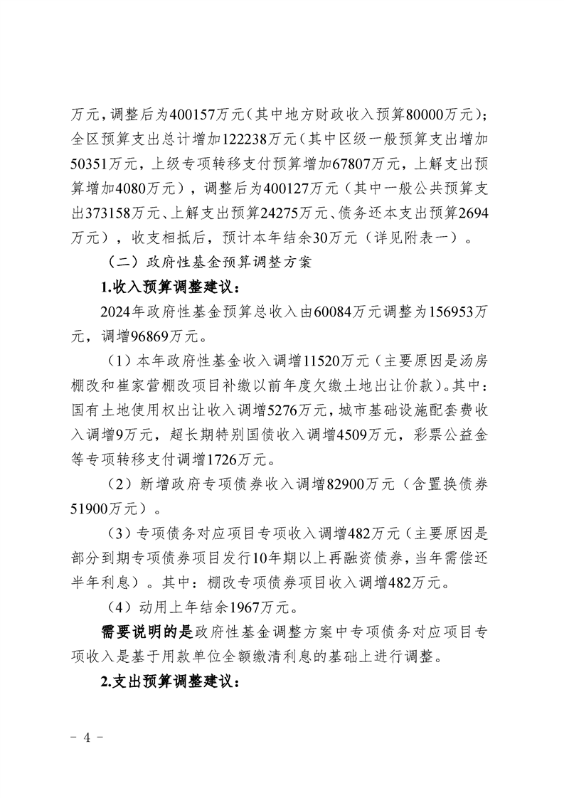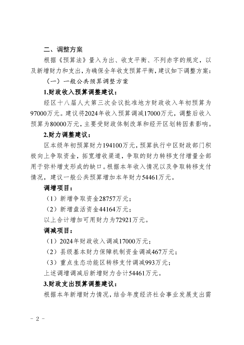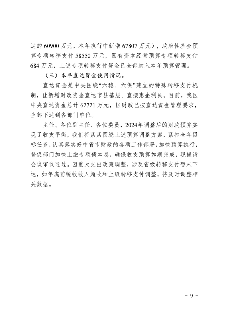 漢中市漢臺區人民政府關于漢臺區2024年財政預算調整方案(草案)的報告