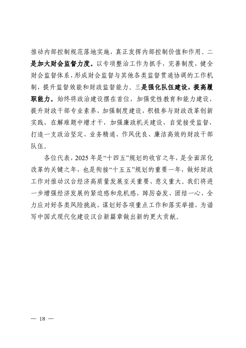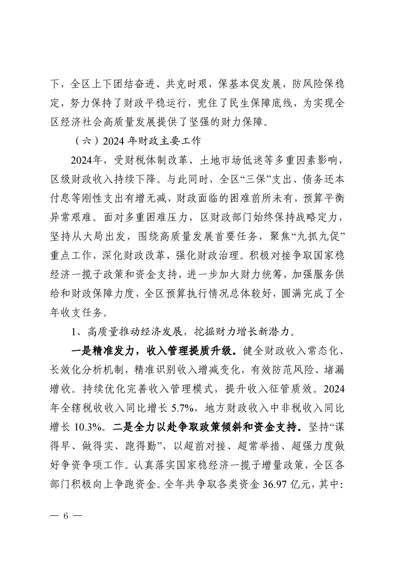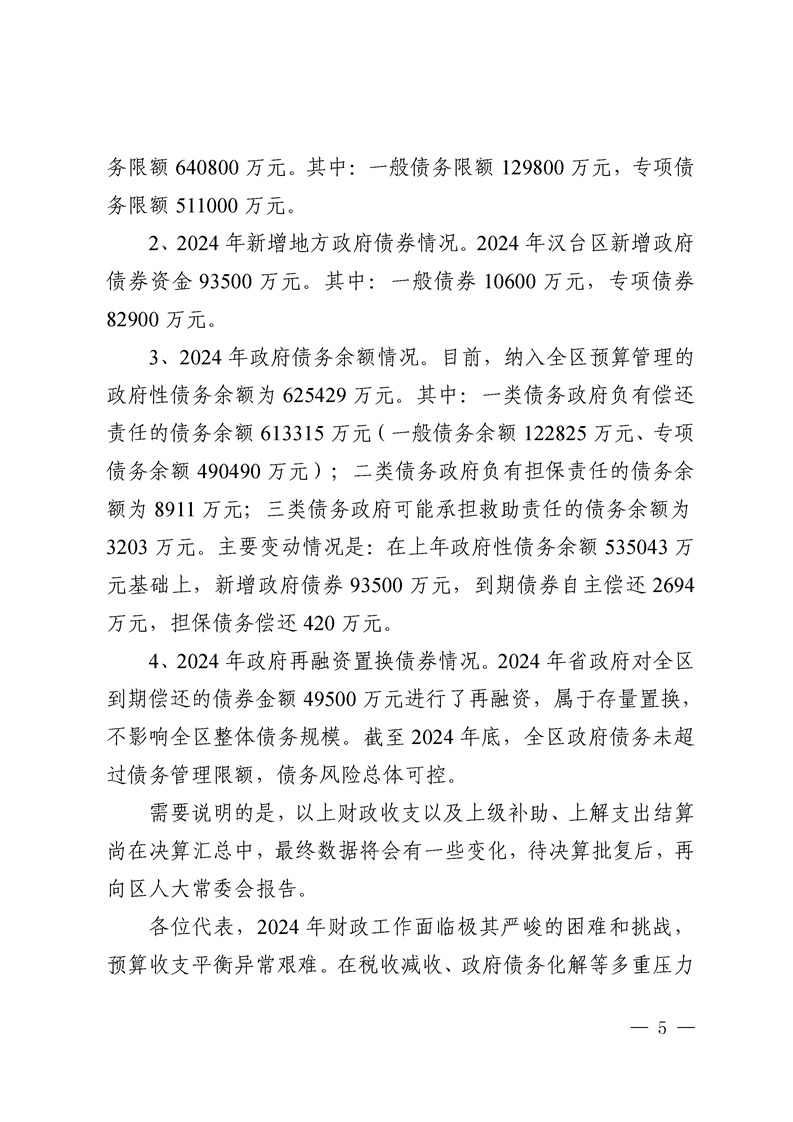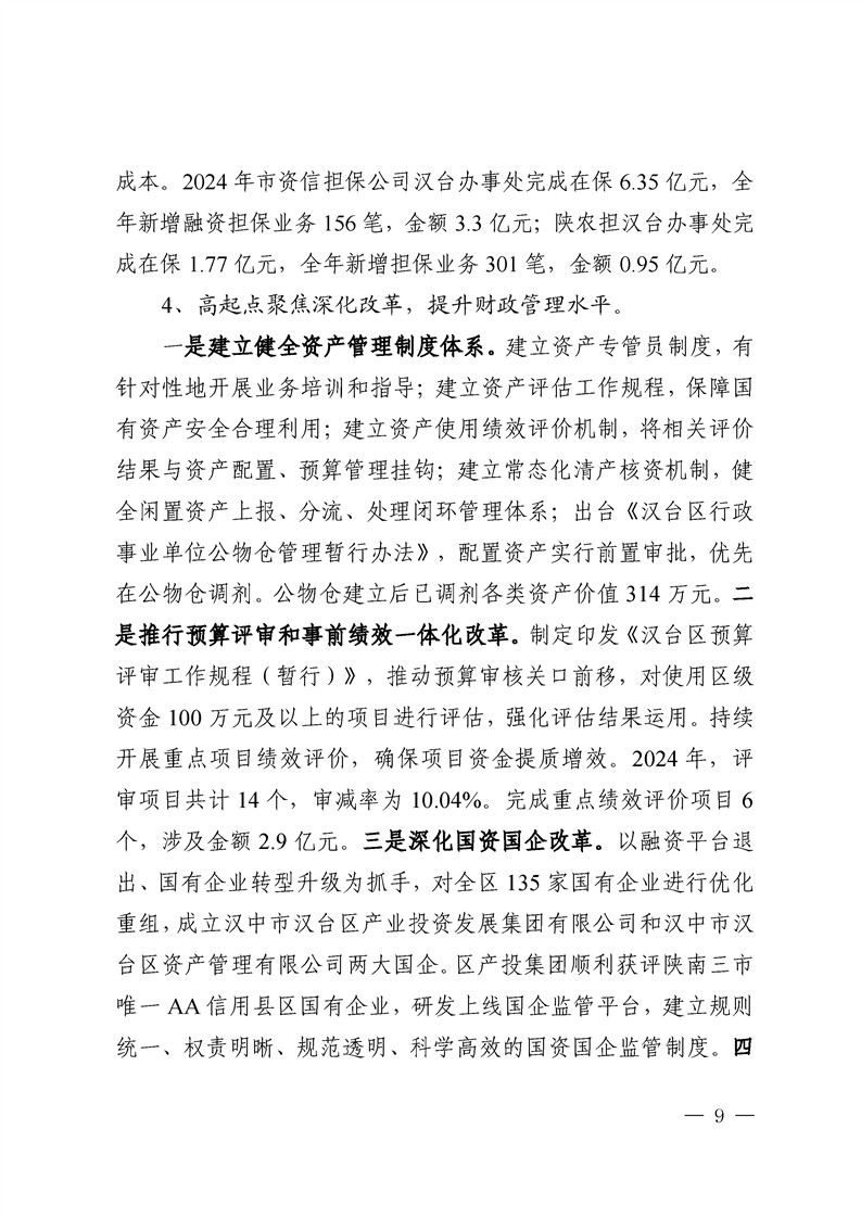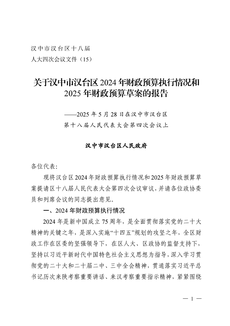 關于漢中市漢臺區2024年財政預算執行情況和2025年財政預算草案的報告