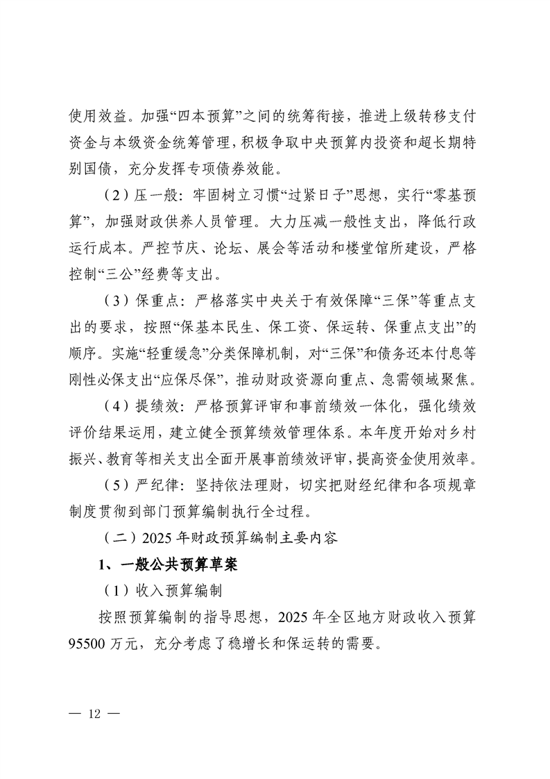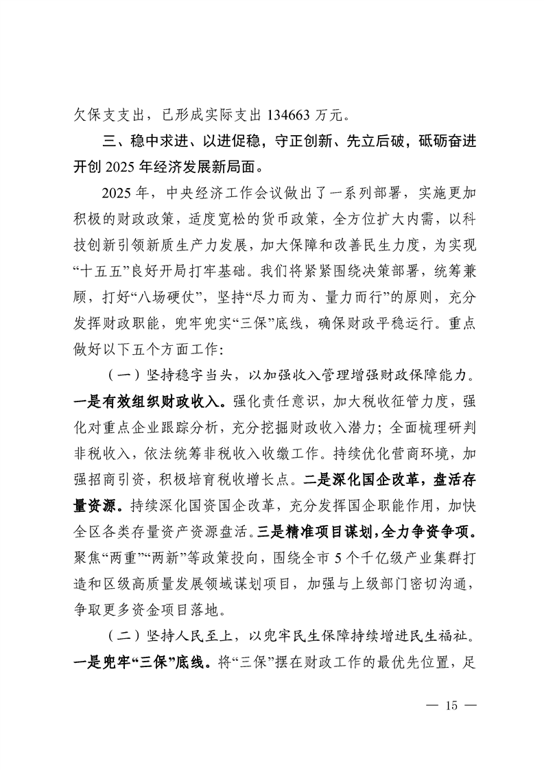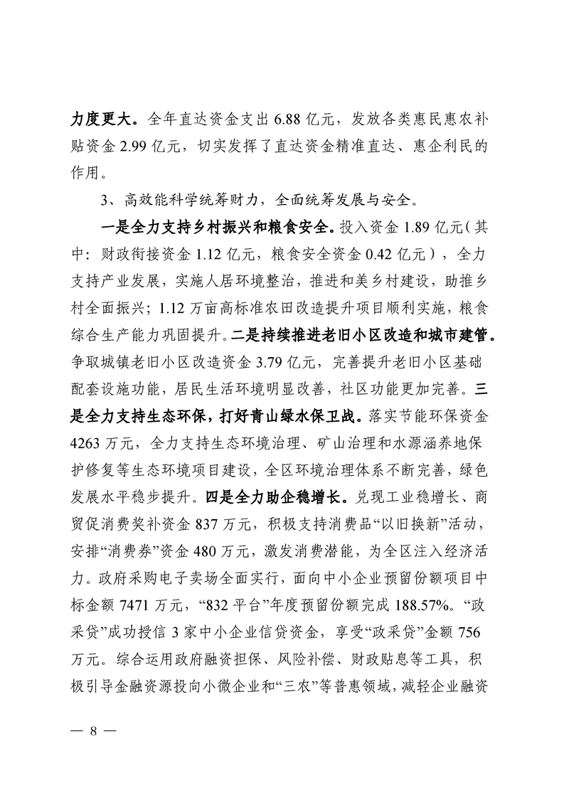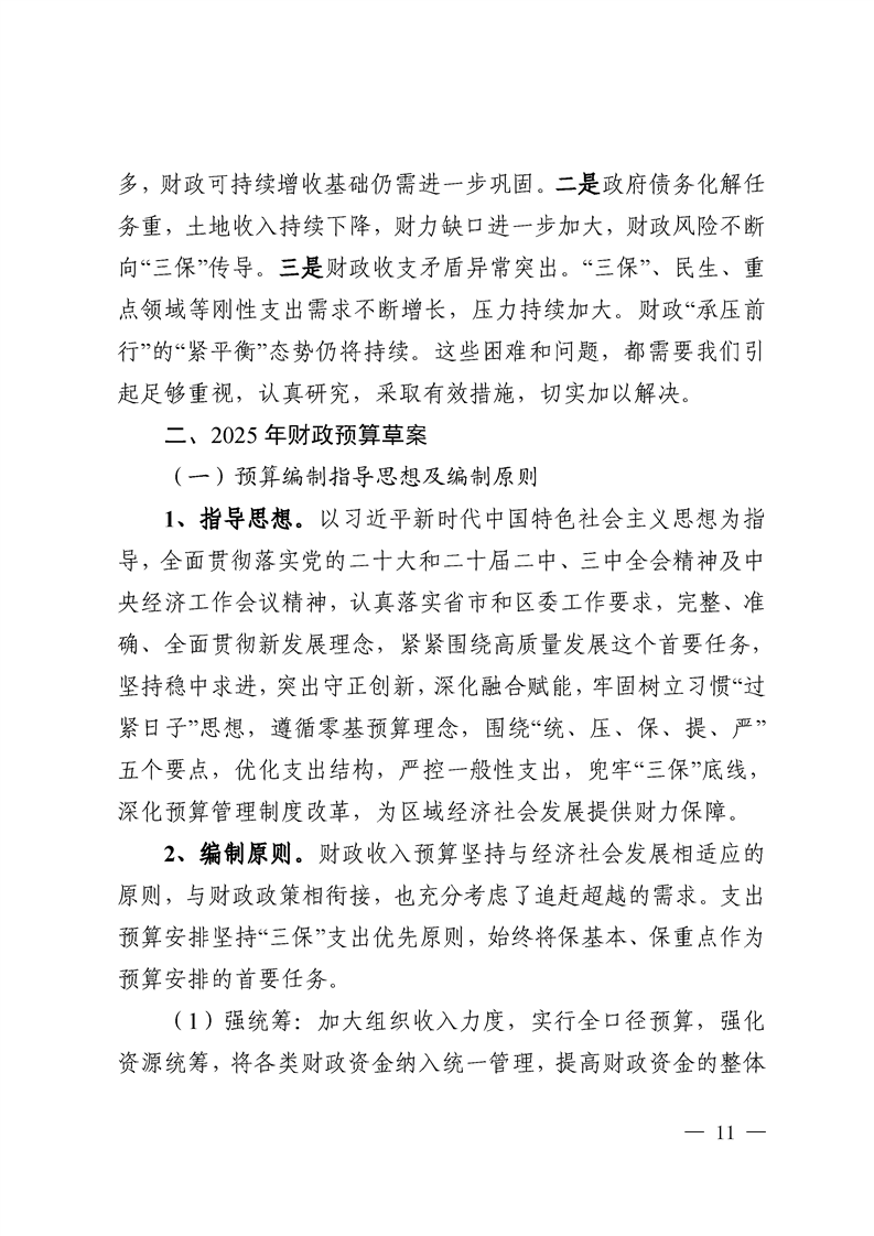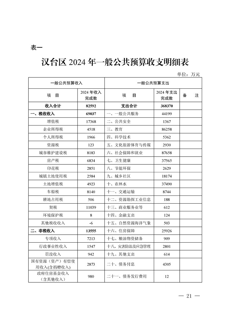 關于漢中市漢臺區2024年財政預算執行情況和2025年財政預算草案的報告