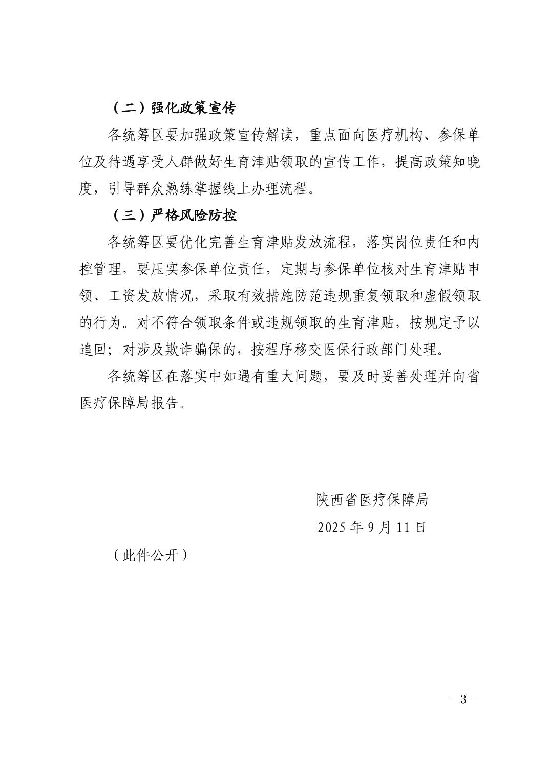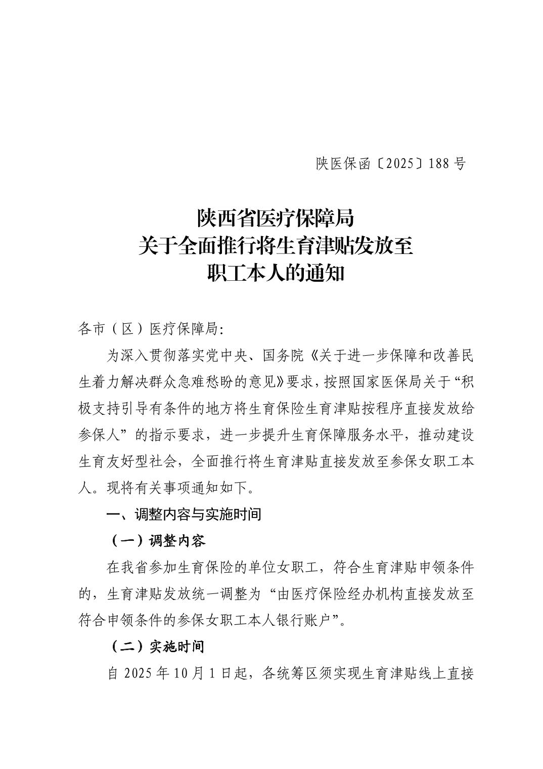 陜西省醫療保障局關于全面推行將生育津貼發放至職工本人的通知