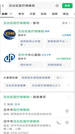 第一步:微信搜索“漢臺區(qū)醫(yī)療保障局”服務(wù)號