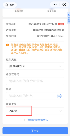 第四步:登錄后填寫參保人身份信息,繳費(fèi)年限選擇