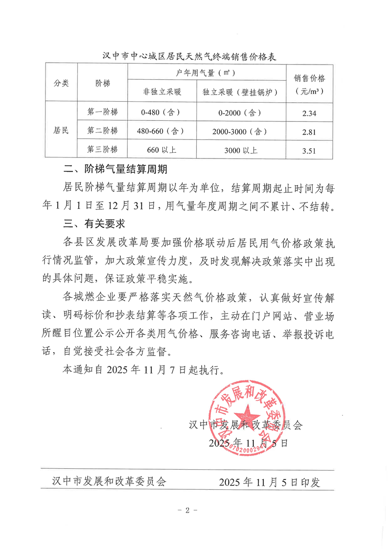 關于聯動調整我市中心城區居民用天然氣銷售價格的通知