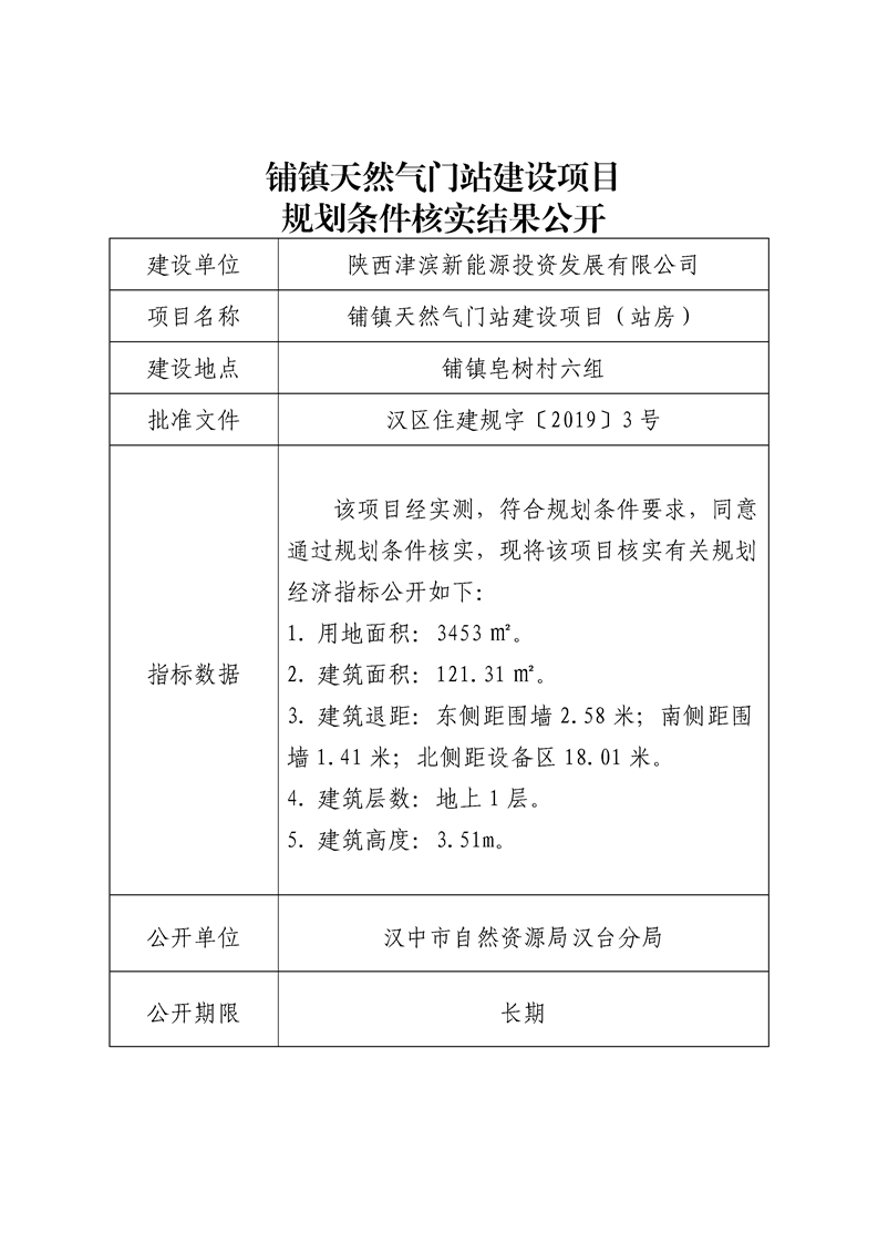 鋪鎮(zhèn)天然氣門站建設(shè)項目規(guī)劃條件核實結(jié)果公開